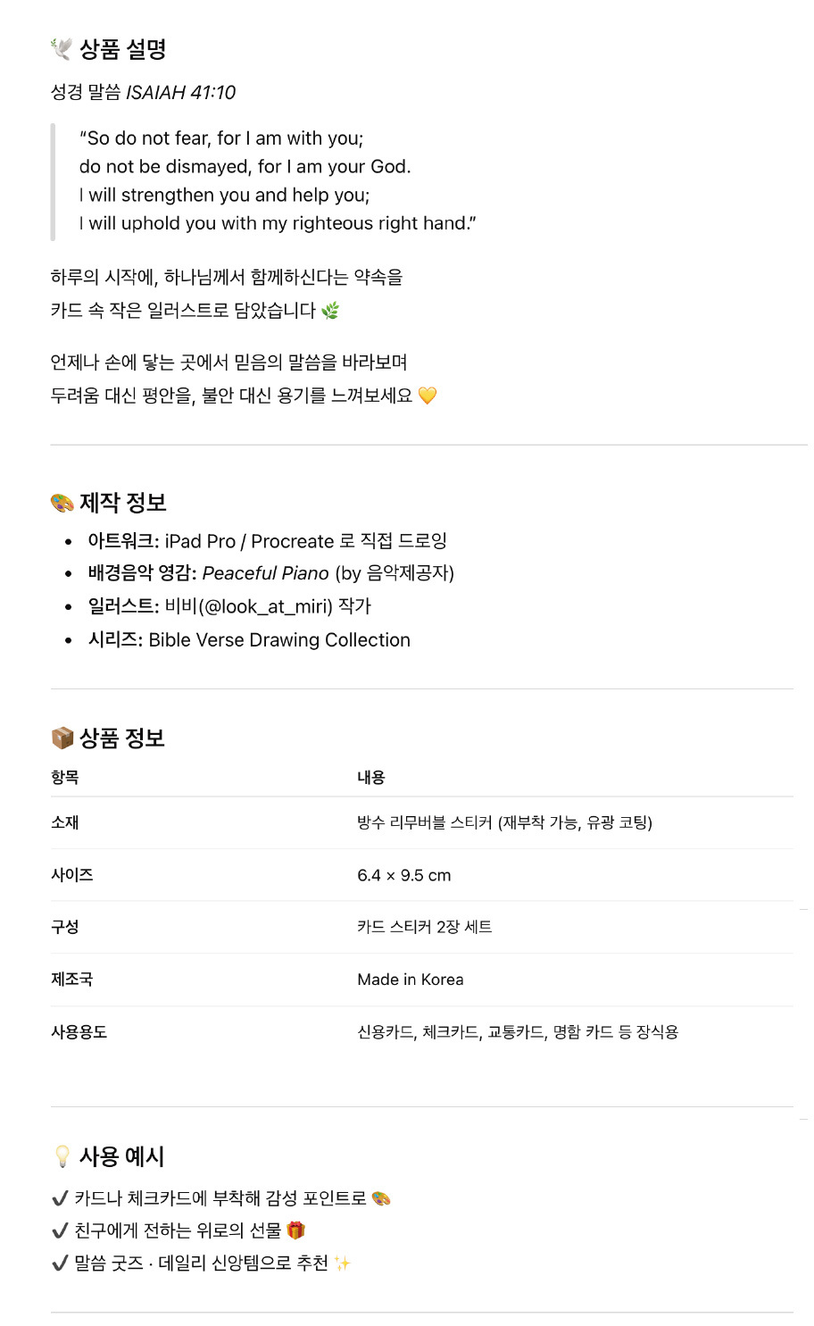 “Do not fear” 말씀 카드 스티커 ✨