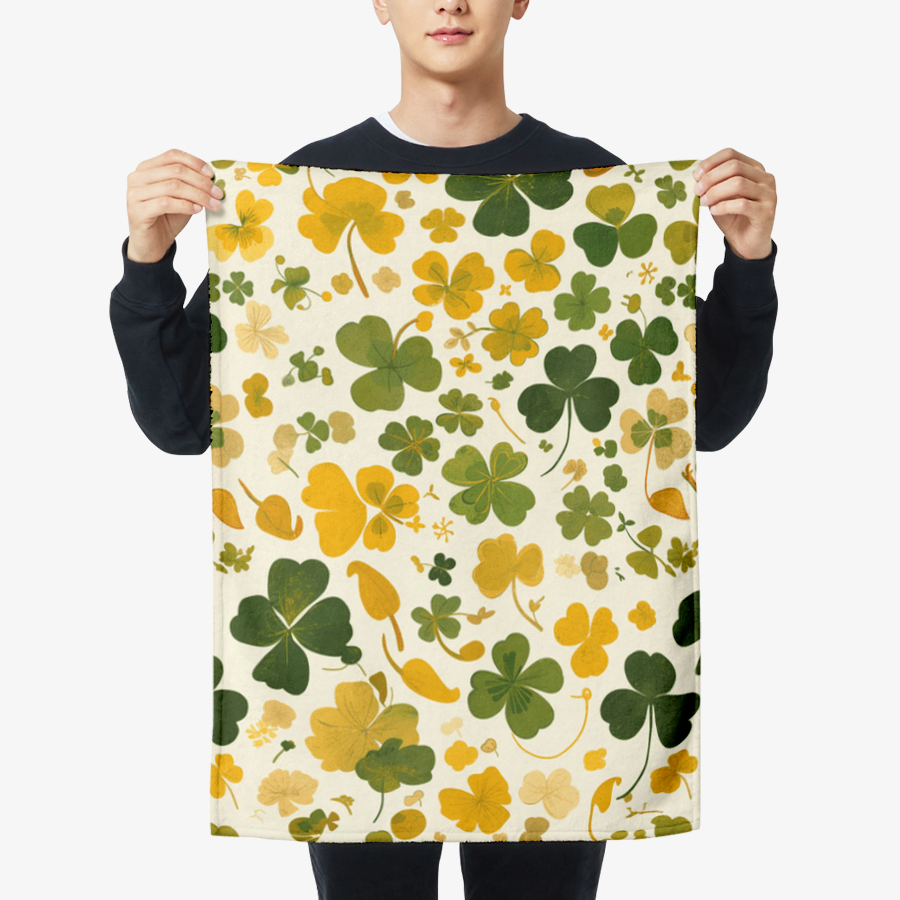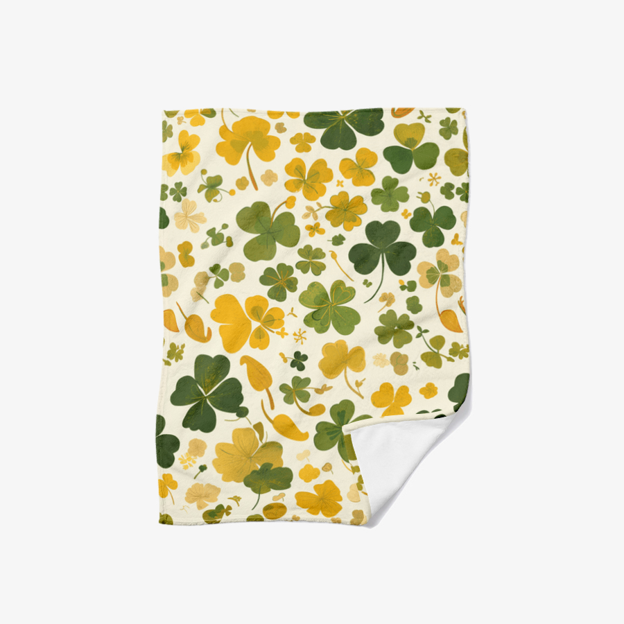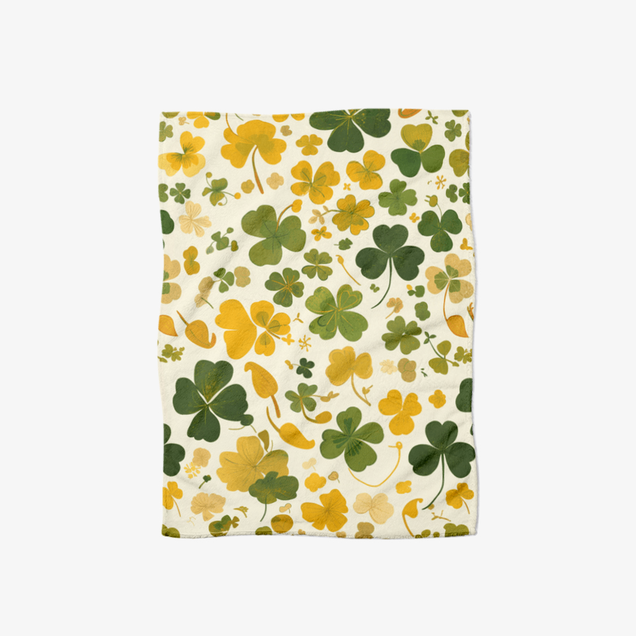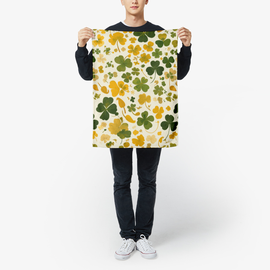 이 부드러운 패턴은 행운과 자연의 아름다움을 상징하는 녹색과 노란색의 다양한 색조의 클로버가 매혹적으로 배열되어 있습니다.