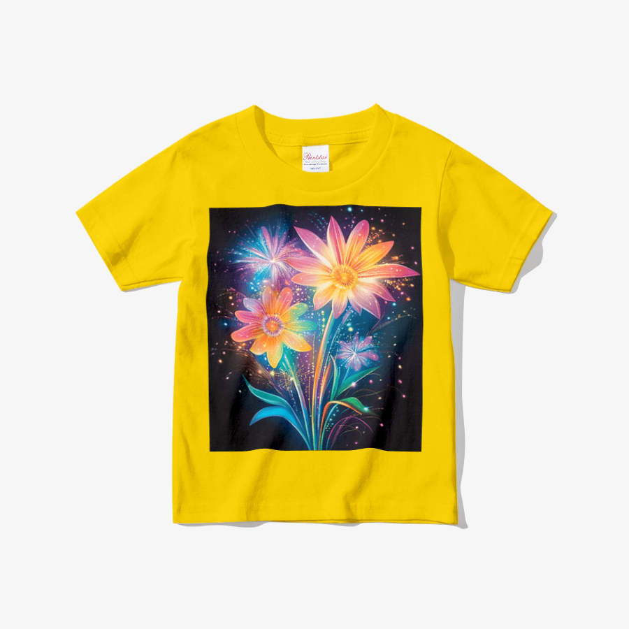 이 생동감 넘치는 예술 작품은 꽃의 아름다움과 불꽃놀이의 반짝임을 결합하여 축제의 가을 밤의 본질을 포착합니다.