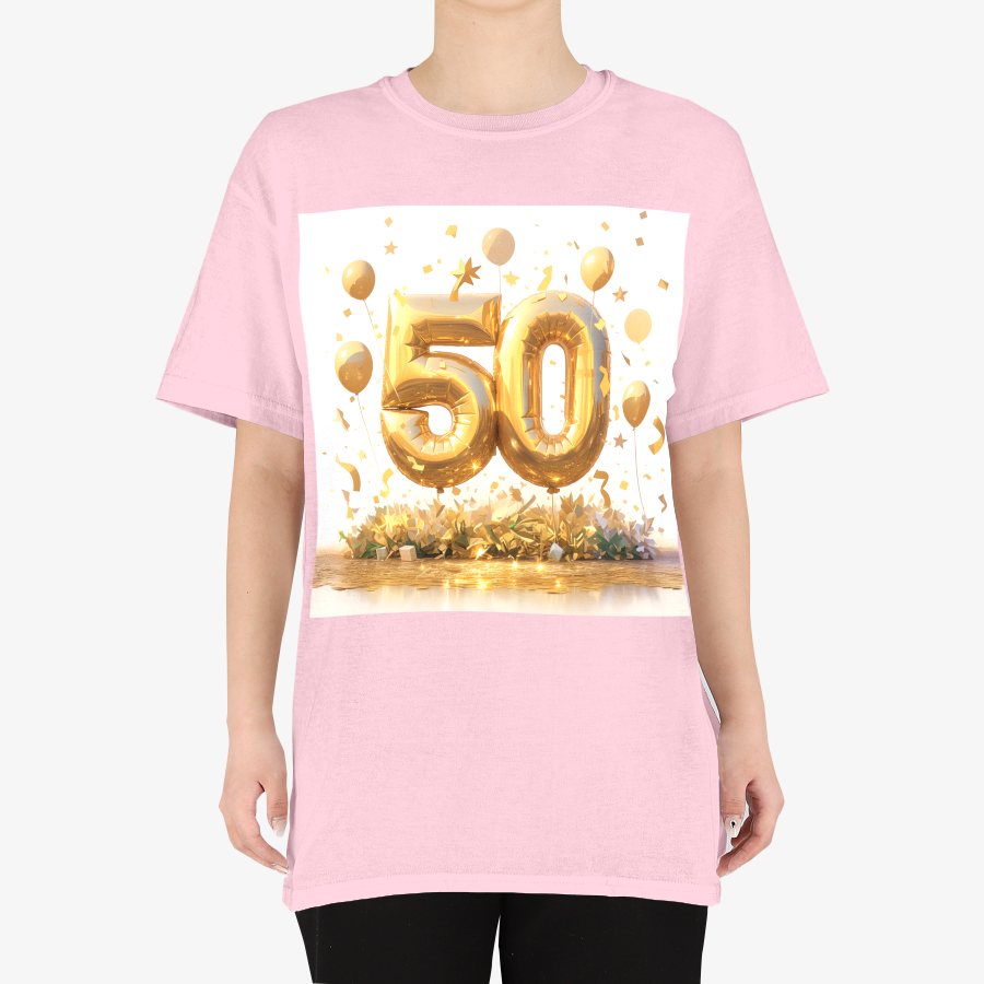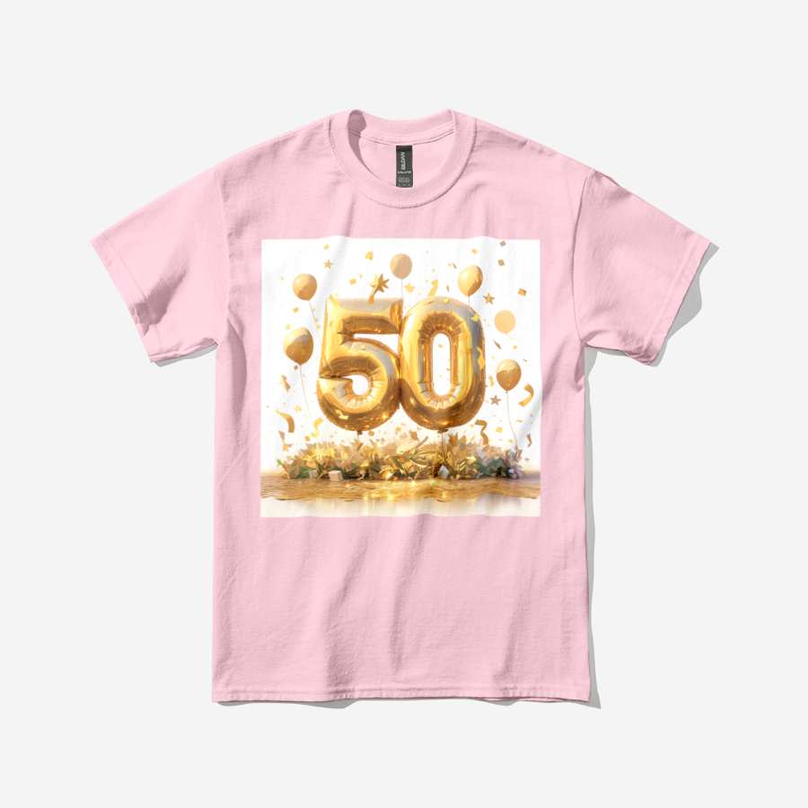 이미지에는 50주년을 기념하는 모든 축하 행사를 상징하는 축제 풍선을 닮은 반짝이는 금색 숫자 '50'이 새겨져 있습니다.