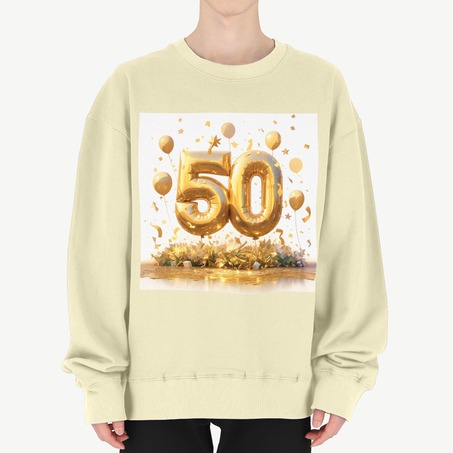 이미지에는 50주년을 기념하는 모든 축하 행사를 상징하는 축제 풍선을 닮은 반짝이는 금색 숫자 '50'이 새겨져 있습니다.