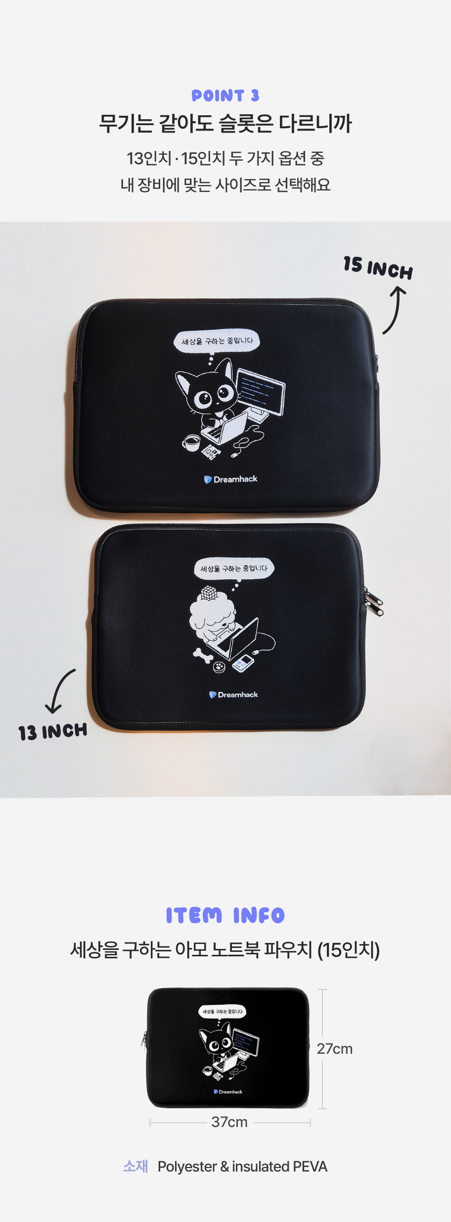 노트북을 안전하게 보관할 수 있는 15인치 케이스입니다.