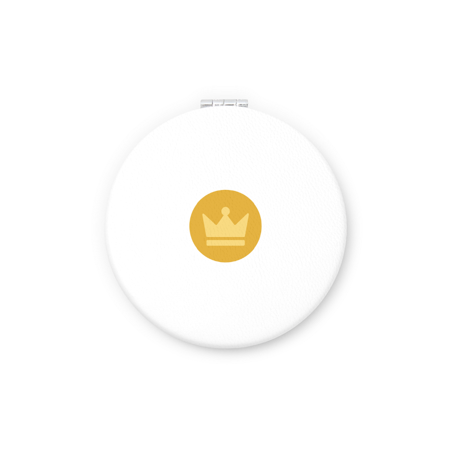 This is a compact, round hand mirror that fits comfortably in one hand.