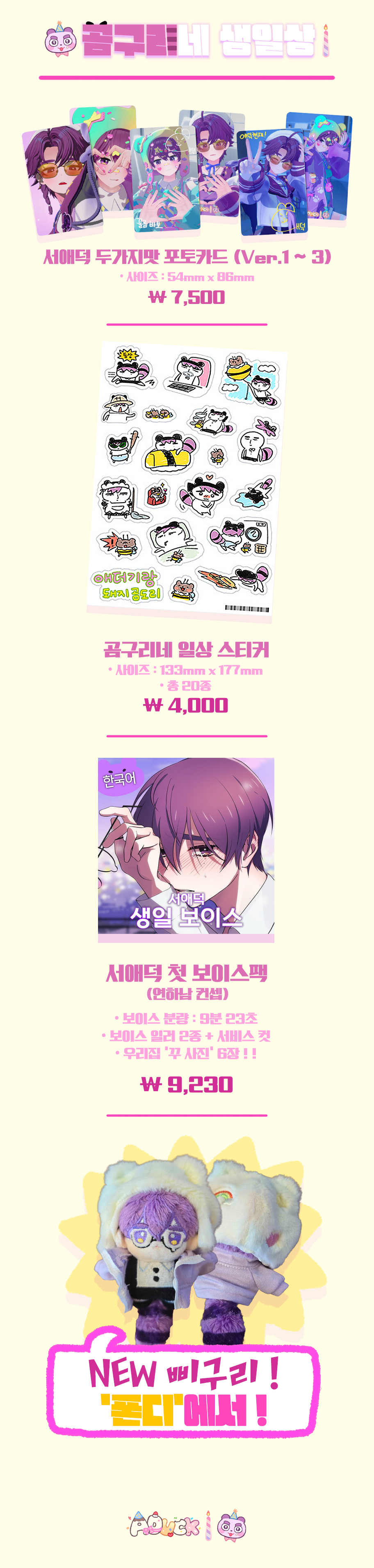 애덕님 생신 축하드립니다🩷 저번 굿즈 때는 기간을 놓쳐 구매 못 한게 많이 아쉬웠었는데 이번엔 구매 할 수 있게 되어서 너무 기쁩니다🩷 항상 건강하세요오🩷