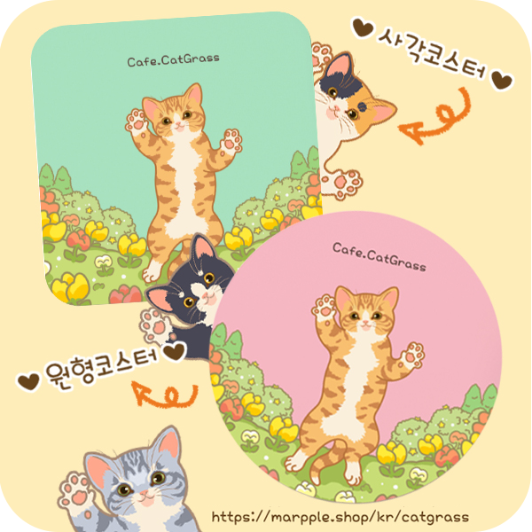 카페 캣글라스 티코스터 사각(치즈테비냥)