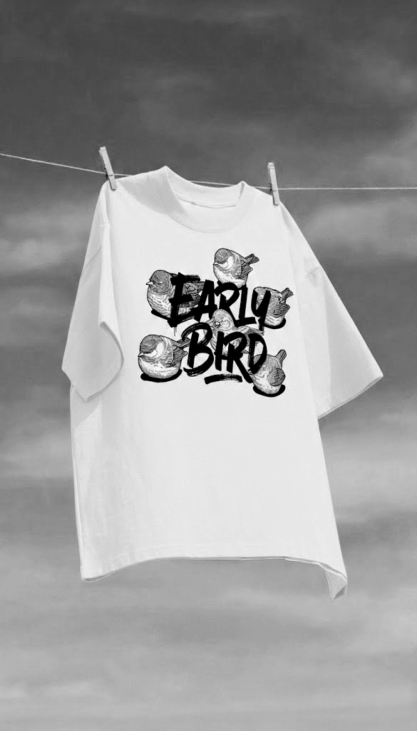 일찍 일어난 새가 뭐든 한다! 라는 의미의 티셔츠 그래픽