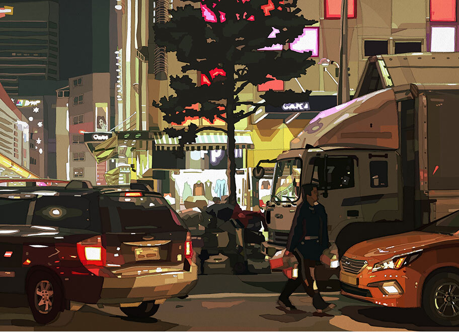 직접 촬영한 도시의 밤 풍경을 바탕으로