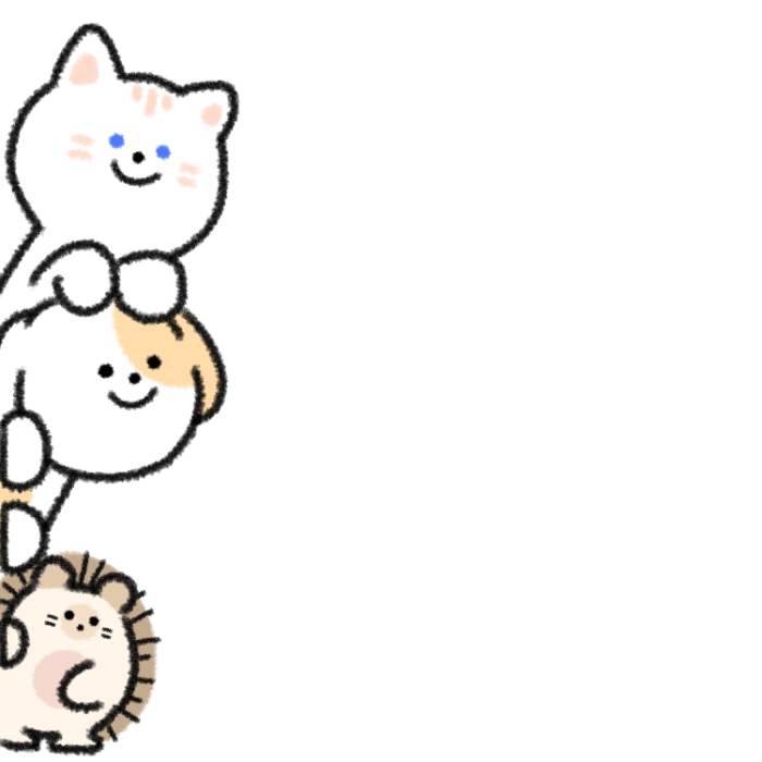 고양이 솜(Som), 강아지 뭉(Moong), 고슴도치 치이(Chie), 그리고 뭉이의 애착 인형 보니(Bonnie)까지!