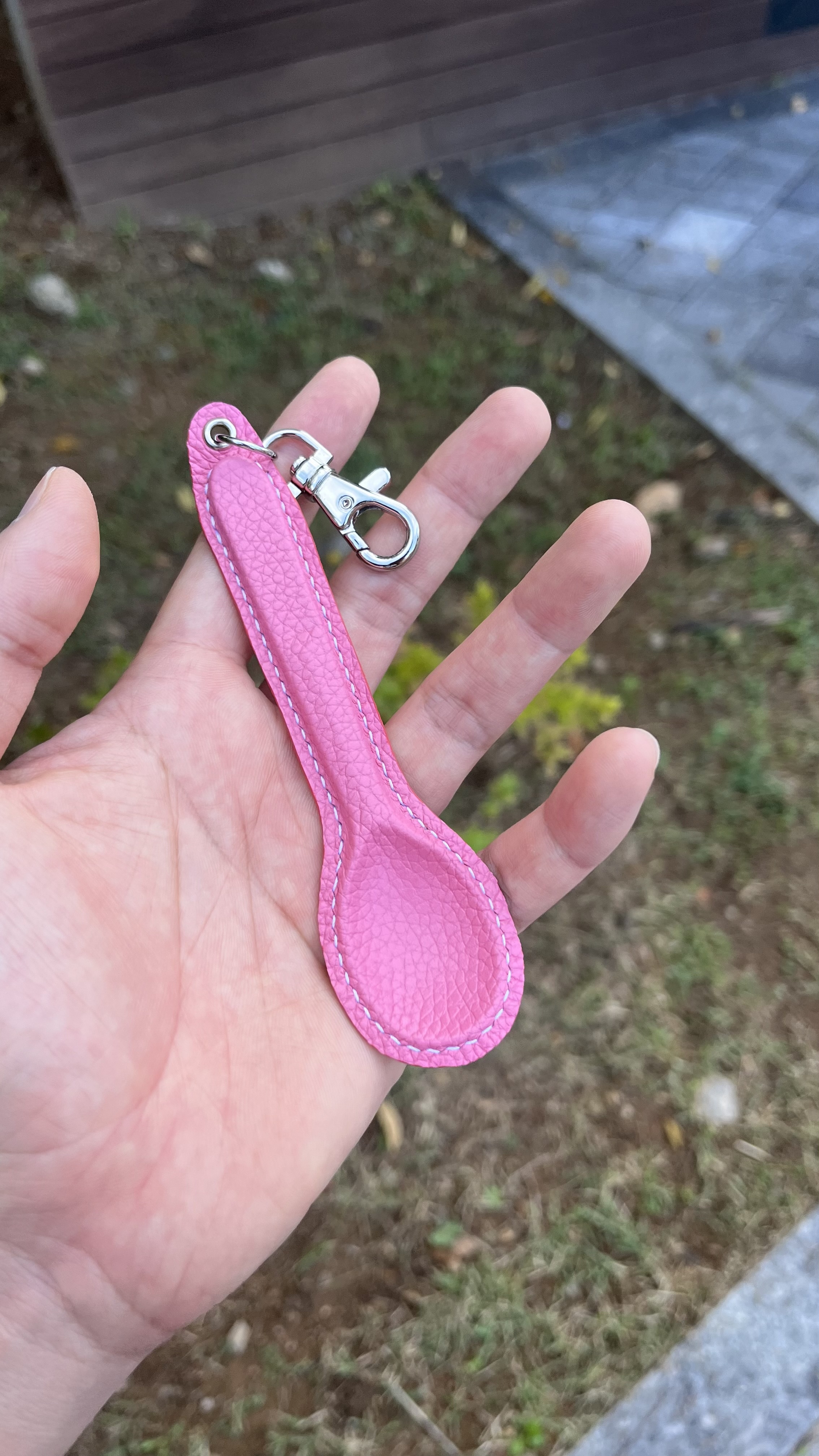 진짜 아이스크림 스푼을 가죽으로 감싸 만든 특별한 키링.