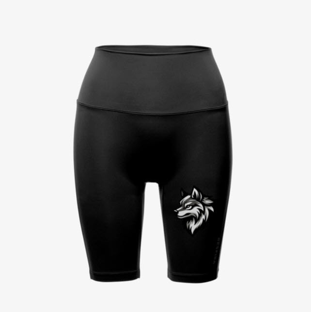 강인함과 집중력을 상징하는 늑대 엠블럼을 미니멀하게 적용한 바이커 쇼츠 디자인입니다.