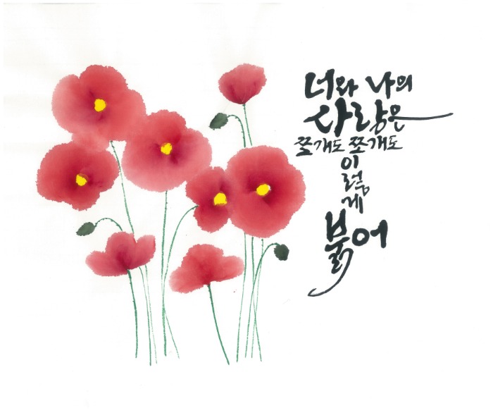 양귀비꽃 수묵 캘리그라피 원본을 아래에 올립니다^^