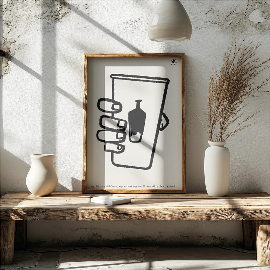手描きのカップとラフな線が、肩の力を抜いた心地よさを演出します。