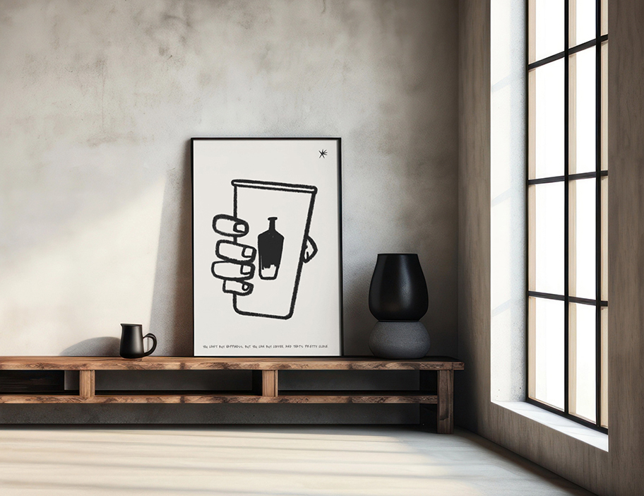 さりげないユーモアを込めたモノトーンポスターです。
