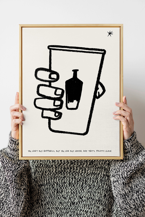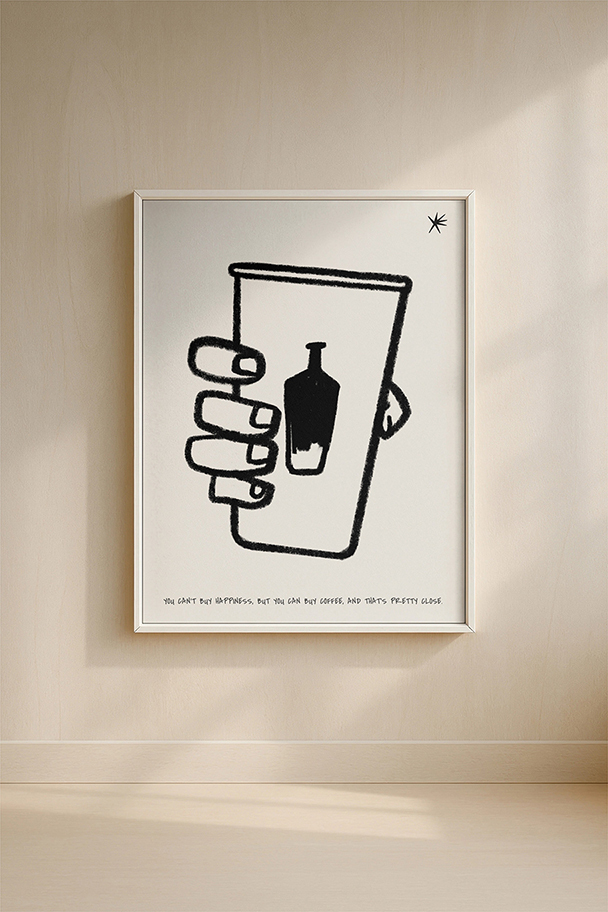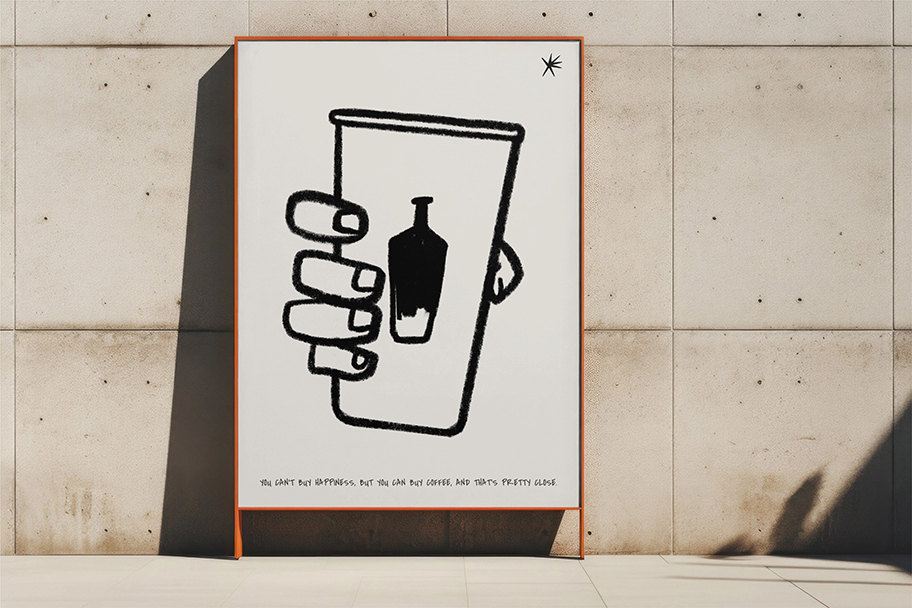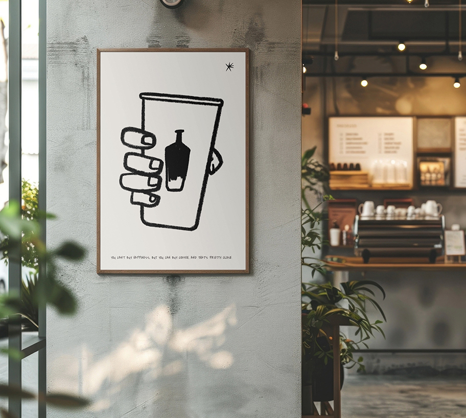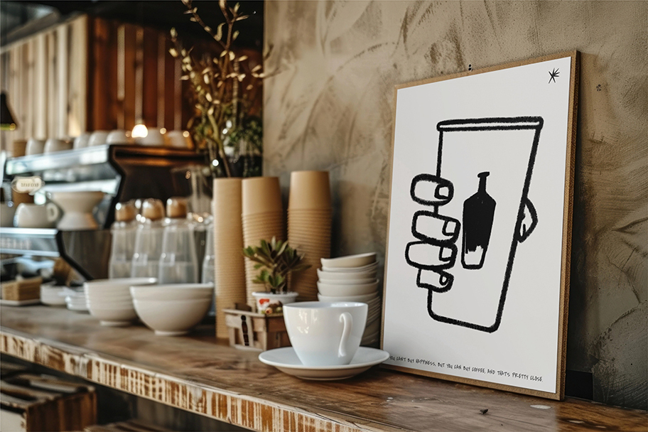 手描きのカップとラフな線が、肩の力を抜いた心地よさを演出します。