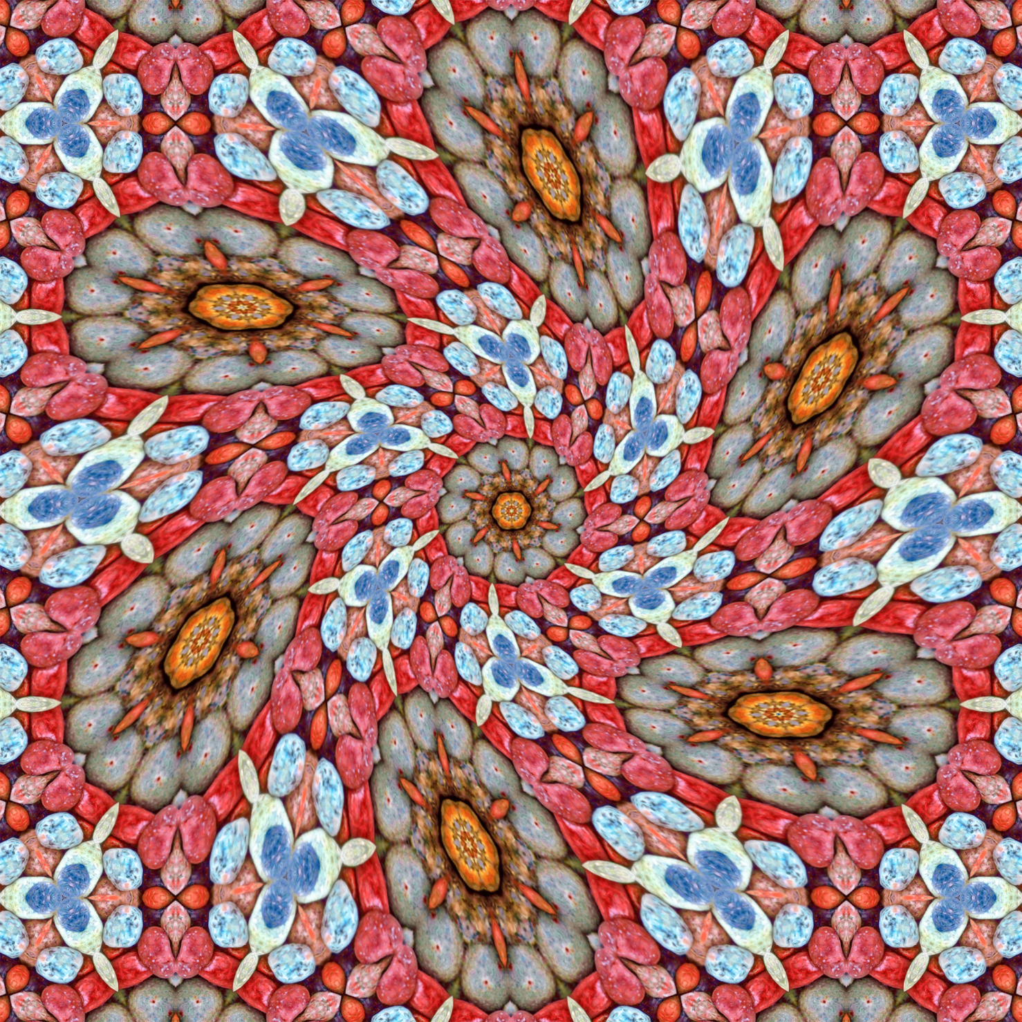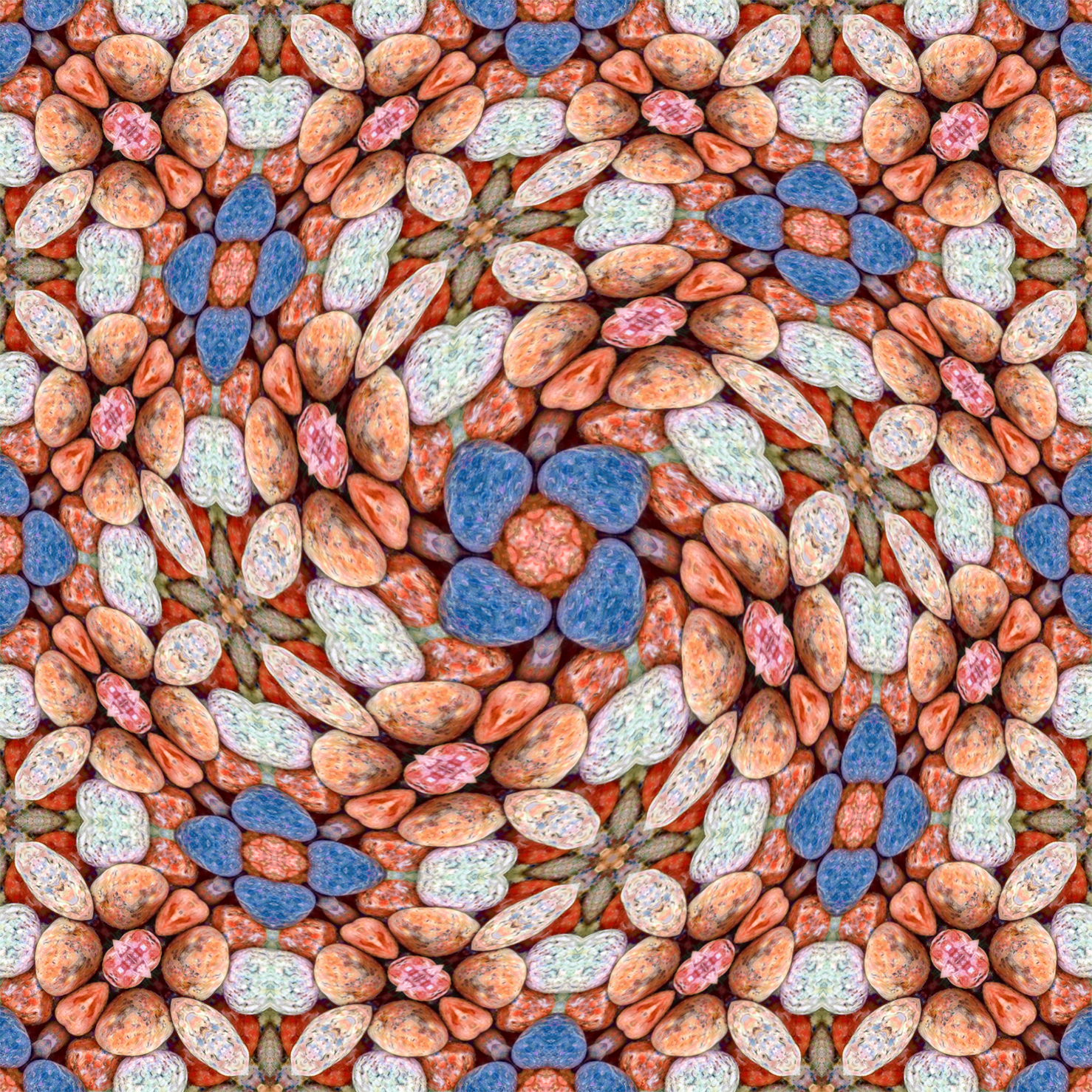 해변의 수많은 조약돌 사진에서 귀여운 꽃다발 패턴을 추출하였습니다.