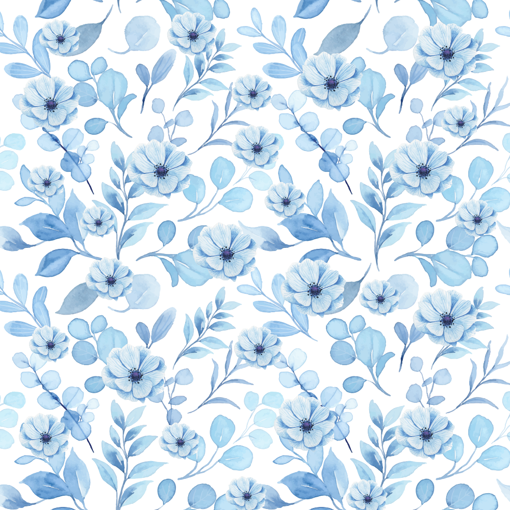 푸른 꽃의 무늬가 돋보이는 쿠션
