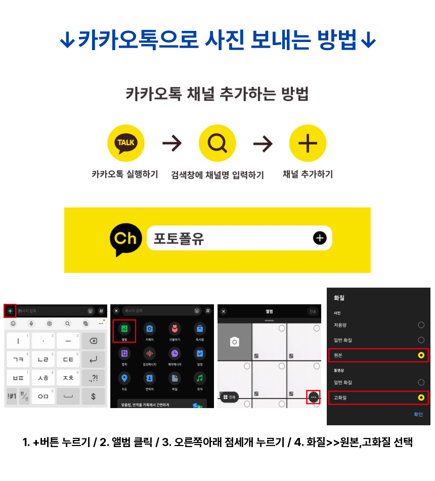 주문 후, 카드타입이나 사진재질, 방향등 잘못선택하신 분들은 카톡채널로 문의 남겨주시면, 취소 후 재결제하는 번거로움없이 제가 기록하여 변경해드리겠습니다:)