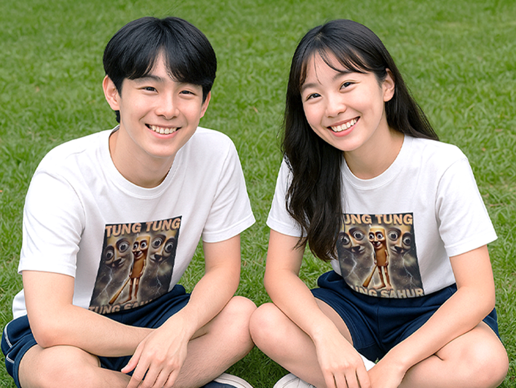 퉁퉁퉁 사후르 VS 트랄라레로 트랄랄라, 과연 누가 이길까? 밤새 릴스를 돌려보며 토론했던 날을 기억한다면, 1만원대로 장만할 수 있는 이 티셔츠로 추억을 박제해보자. 밈은 지나가도 단체티는 영원하니까.