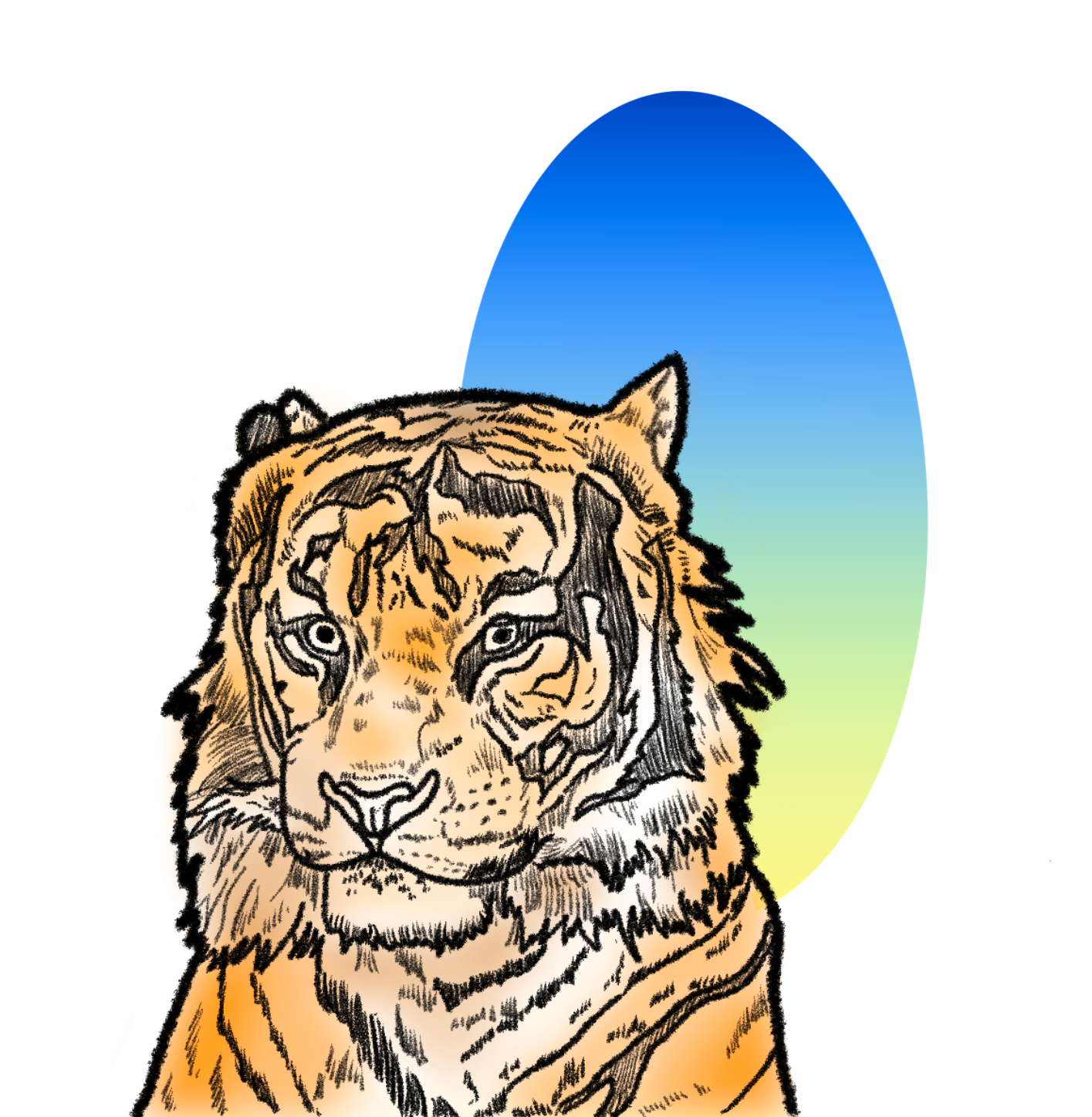 호랑이의 장엄한 분위기를 표현할 색깔과 재치있는 문구로