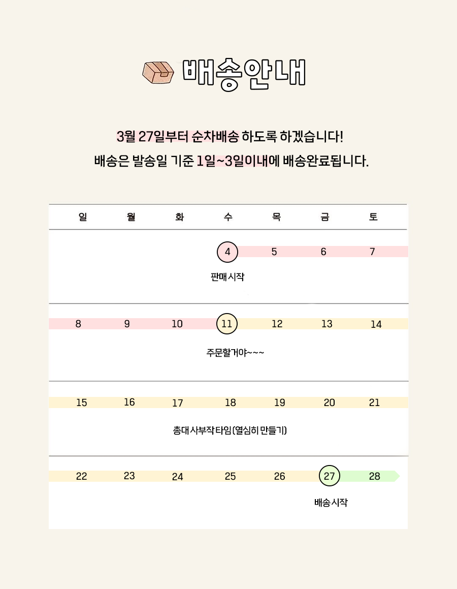 2026-03-27(금) 부터 주문순으로 출발 예정