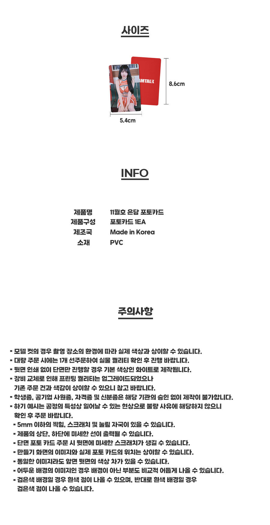 • 단면 포토 카드 주문 시 뒷면에 미세한 스크래치가 생길 수 있습니다.