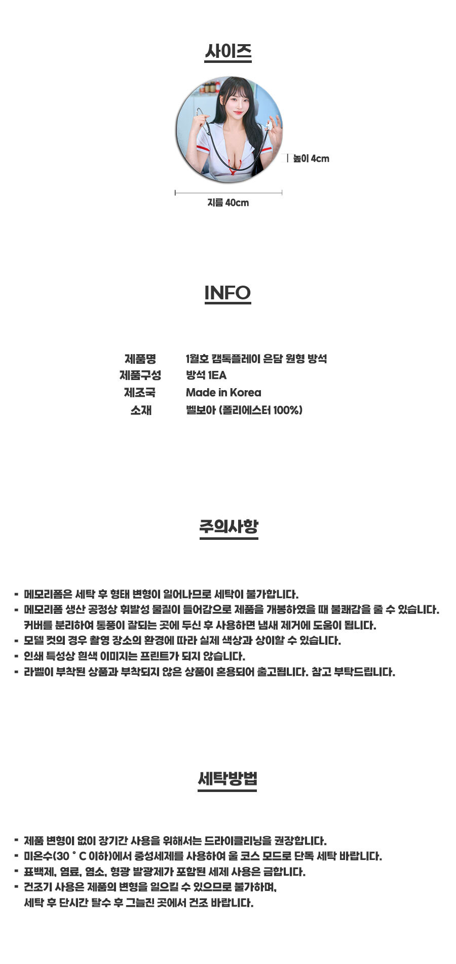 Size (cm)메모리폼 원형 방석 (벨보아)