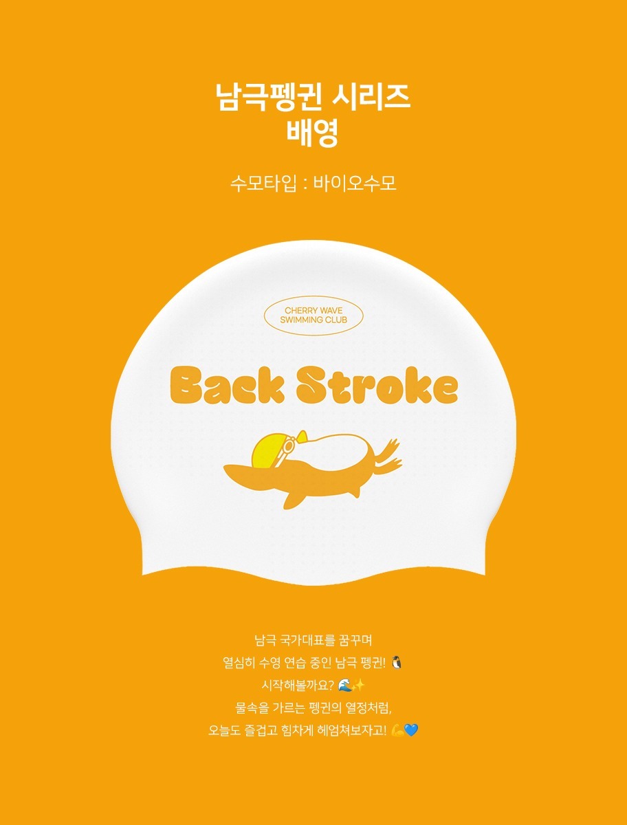 남극펭귄 배영 바이오 실리콘 수모 백스트로크영법 체리웨이브 수영 모자