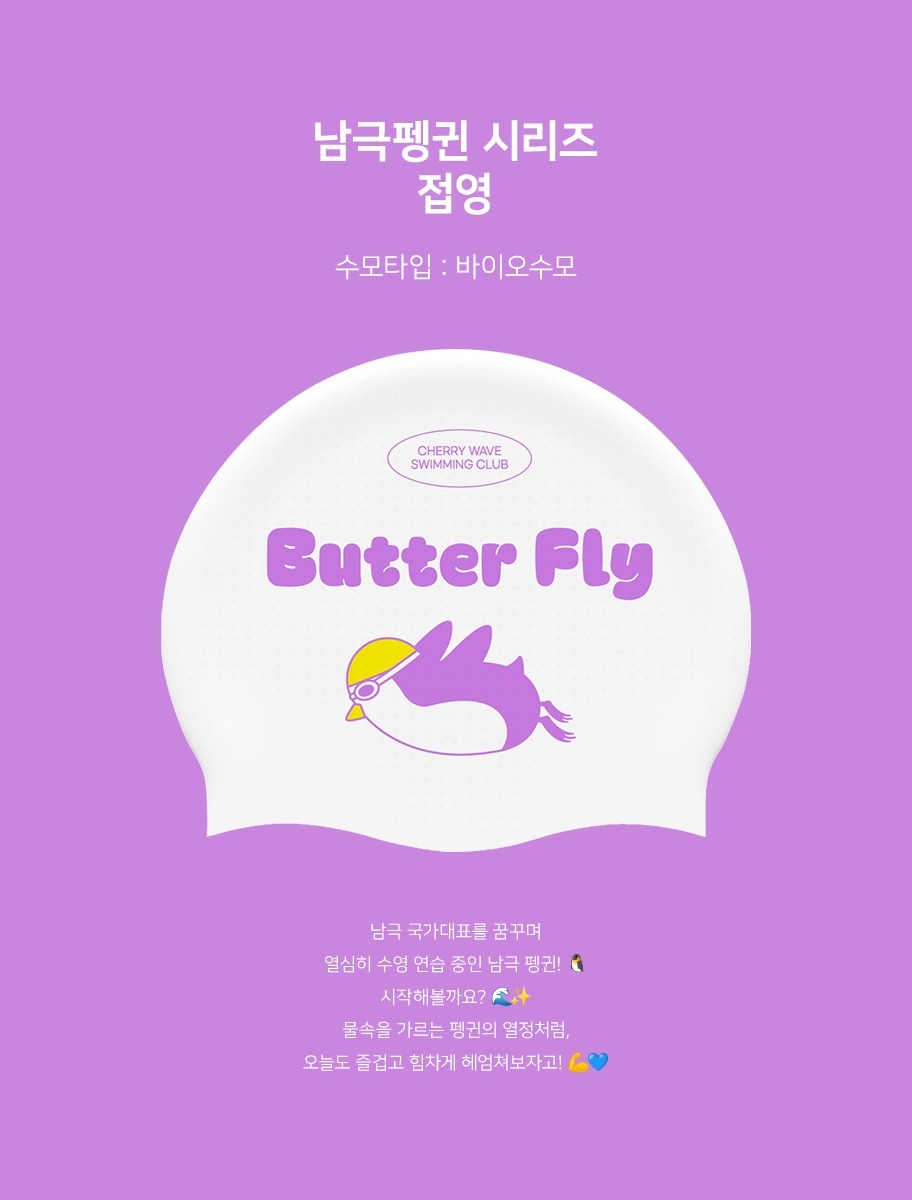 남극펭귄 접영 바이오 실리콘 수모 버터플라이 영법 체리웨이브 수영 모자
