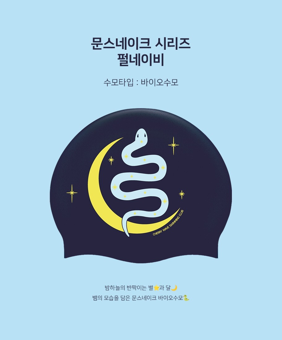 문스네이크 뱀 펄네이비 바이오 실리콘 수모 체리웨이브 수영 모자