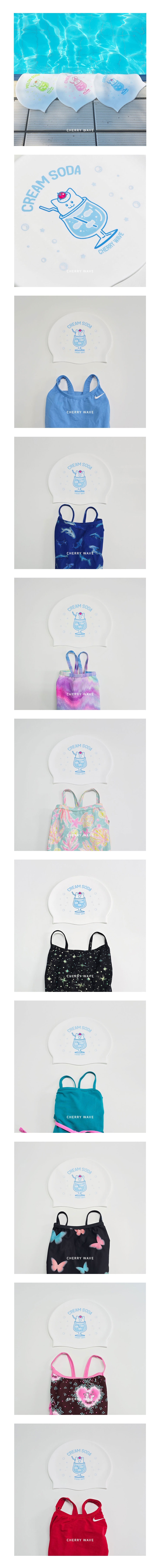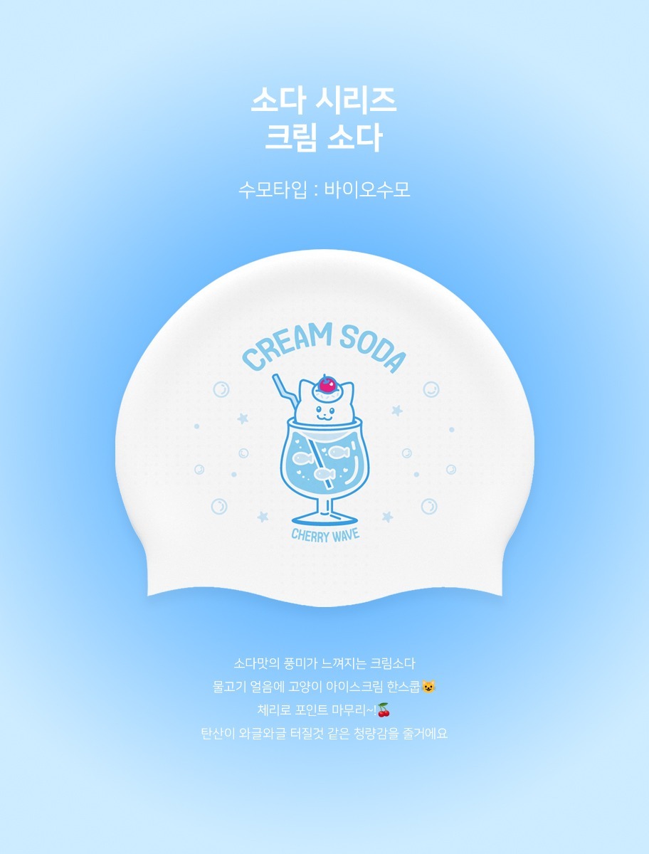 크림 소다 고양이 바이오 실리콘 수모 체리웨이브 수영 모자