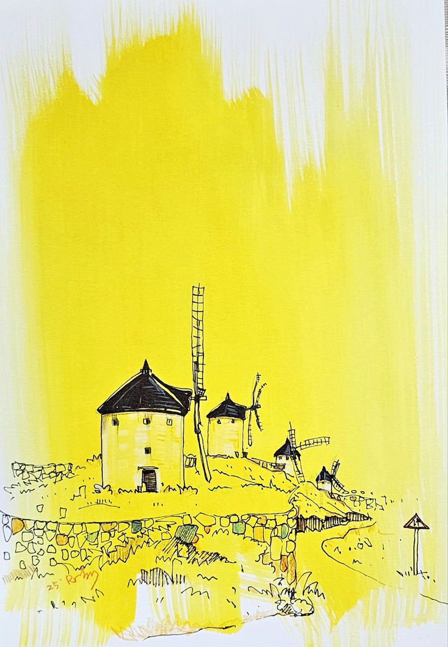 스페인 작은 마을에서 만난 오래된 라마차와 햇살 가득한 언덕 그 곳에서 느낀 평온과 자유, 그리고 마음에 남아 있는 따스함을 그림에 담았습니다.