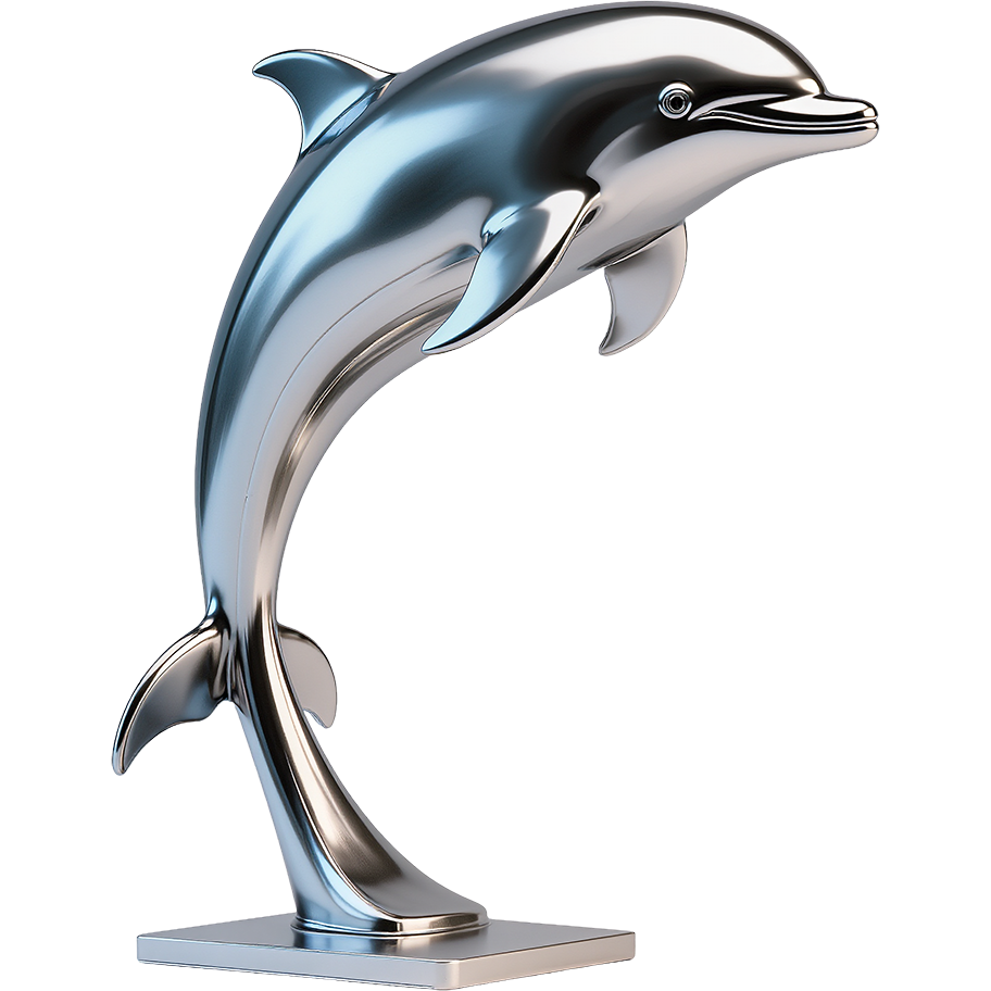 크롬 질감의 돌핀 조형물이 돋보이는 모던하고 세련된 디자인입니다.