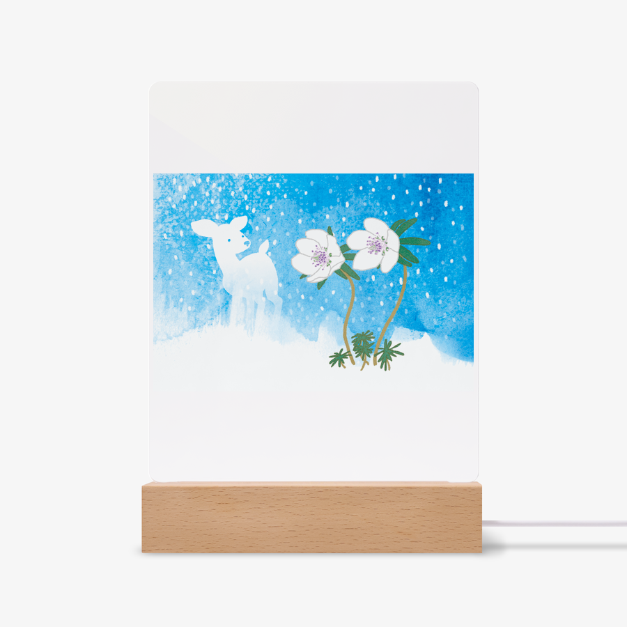 아크릴과 원목 받침대로 구성된 아크릴 무드등입니다.