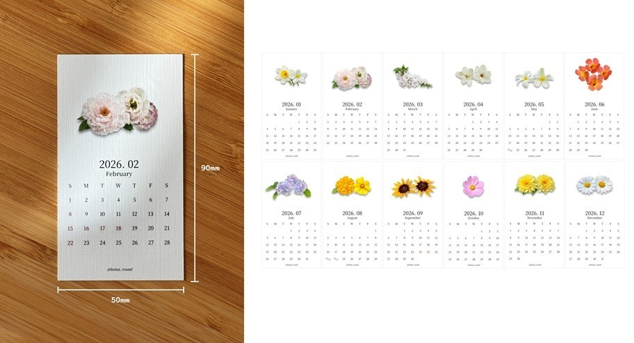 2026년 미니 감성 꽃 캘린더입니다.