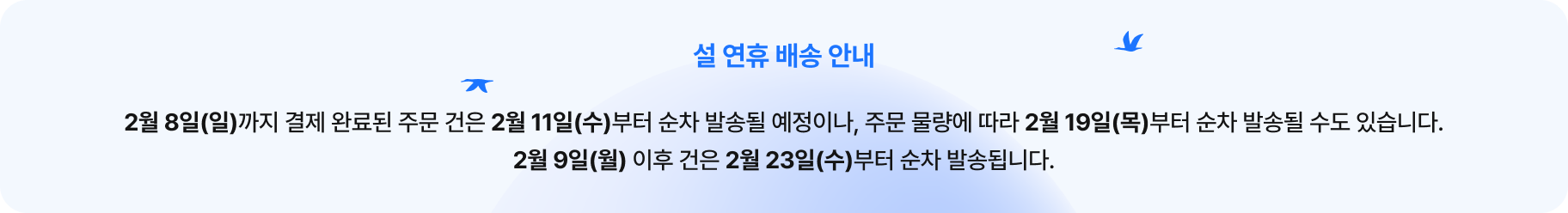 지금 주문하면 2/11 ~ 2/23 사이에 출발해요!