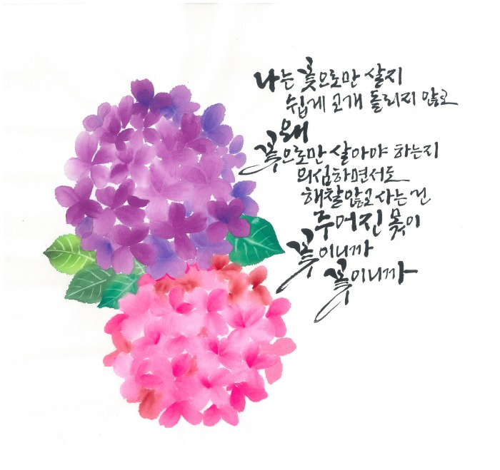 수국 수묵 캘리그라피 원본을 아래에 올립니다^^