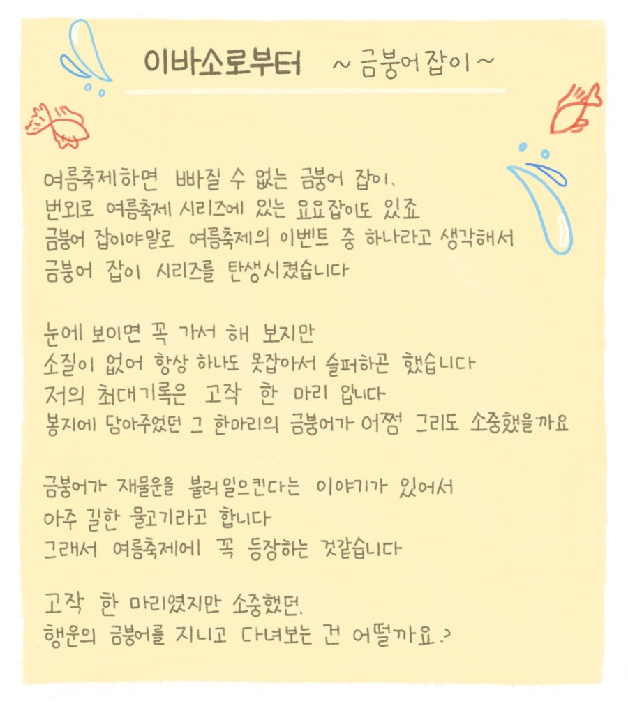 [여름축제에 빼놓을 수 없는 금붕어 잡이, 여러분들도 해 본 기억이 있으신가요 ?