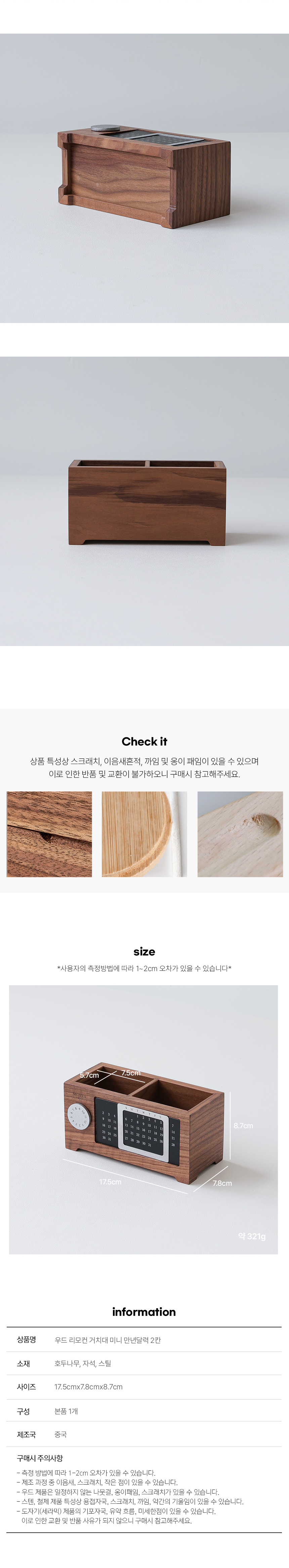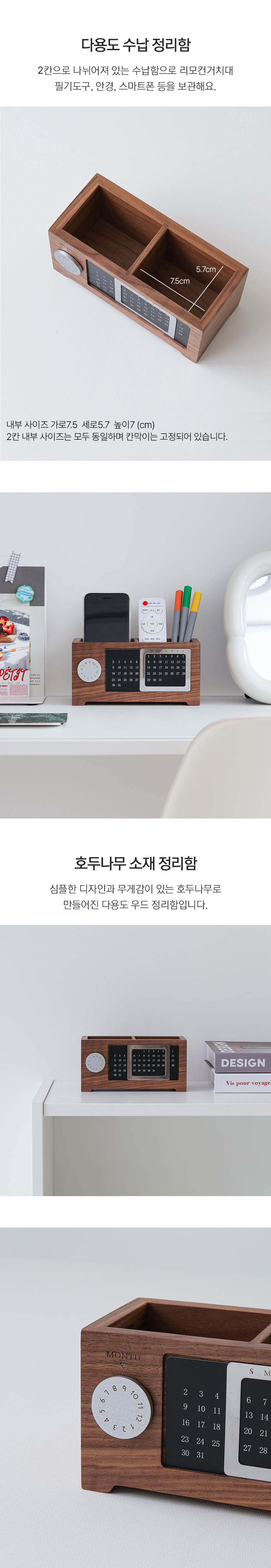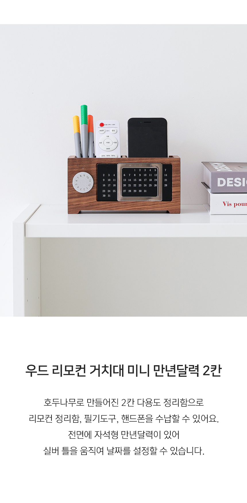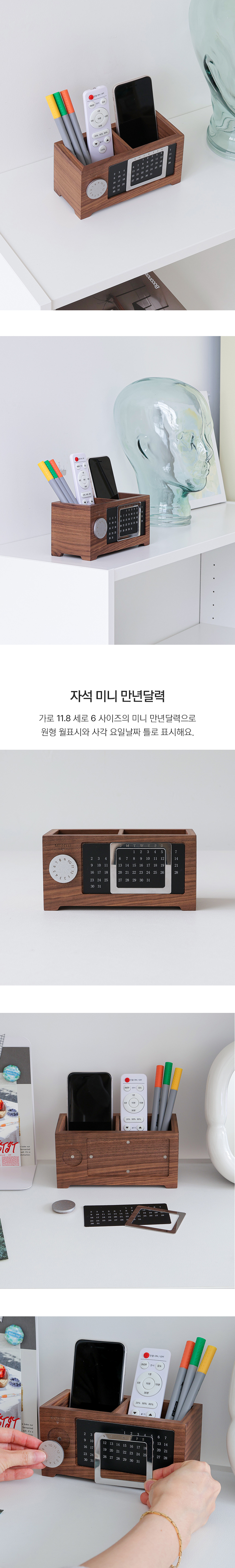 우드 리모컨 거치대 미니 만년달력 다용도 정리함 2칸