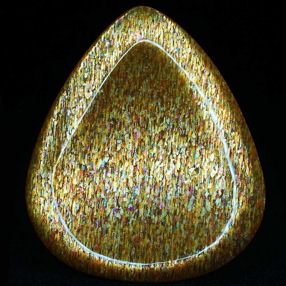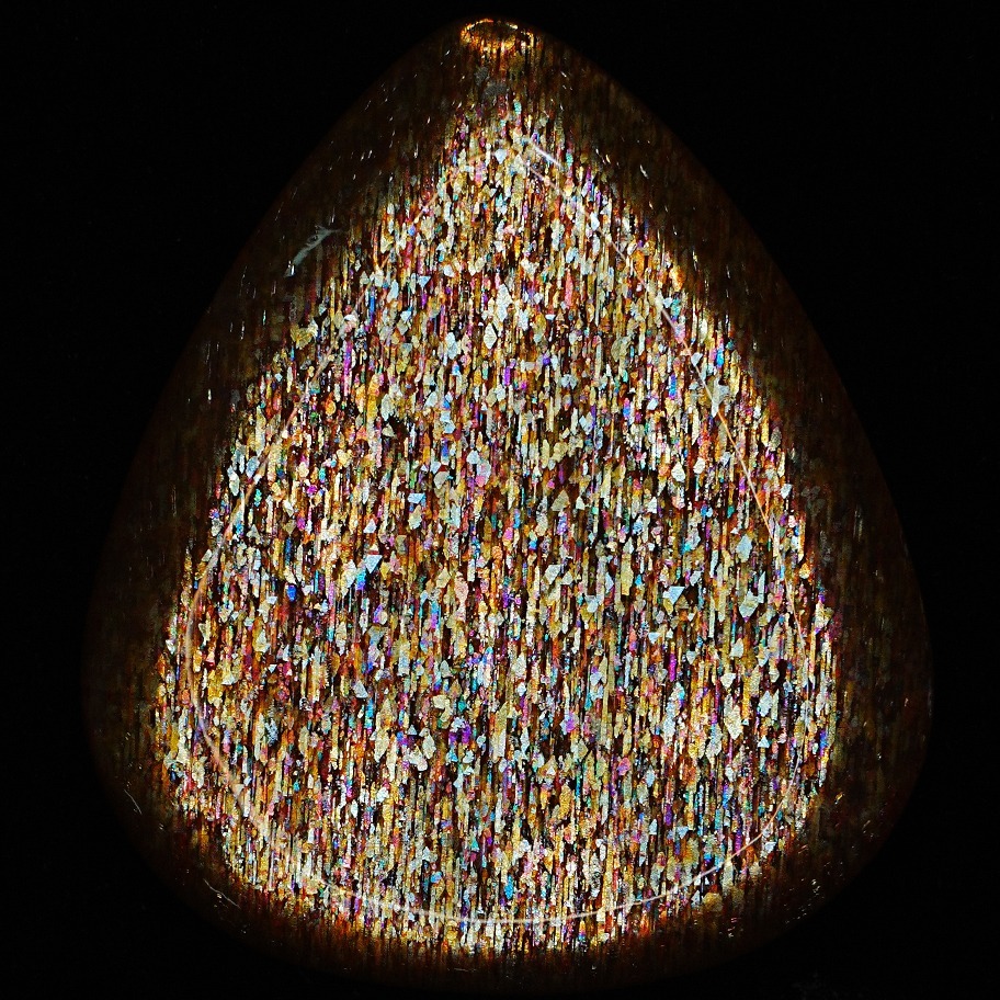최상급 썬스톤은 적철석 결정들의 밀도가 높고 황금빛과 무지개빛이 공존합니다.