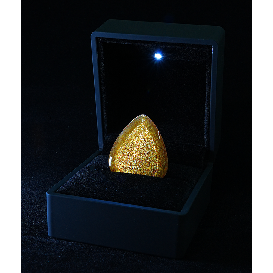 썬스톤은 내부의 산화된 적철석이 빛을 받아 어벤츄레센스 효과를 냅니다.