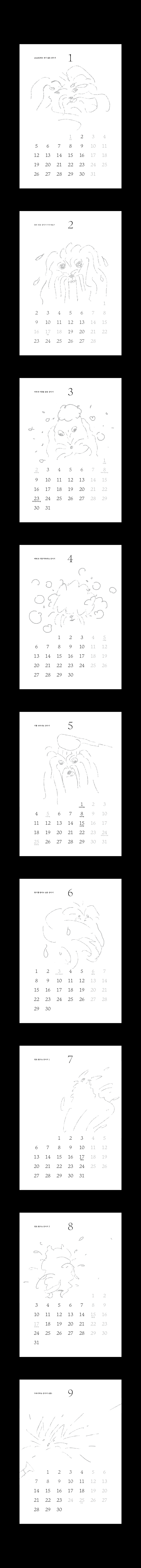 그런 강아지가 씻는 과정을 담은 달력입니다.
