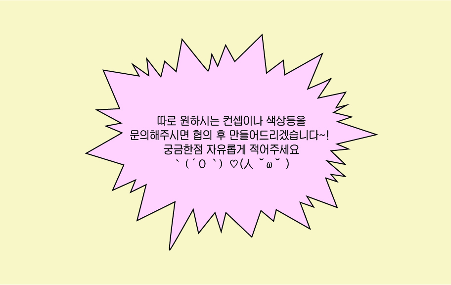 • 모든 제작 과정이 자동화되어 있기 때문에 별도로 수정 요청이나 안내를 드리지 않습니다.