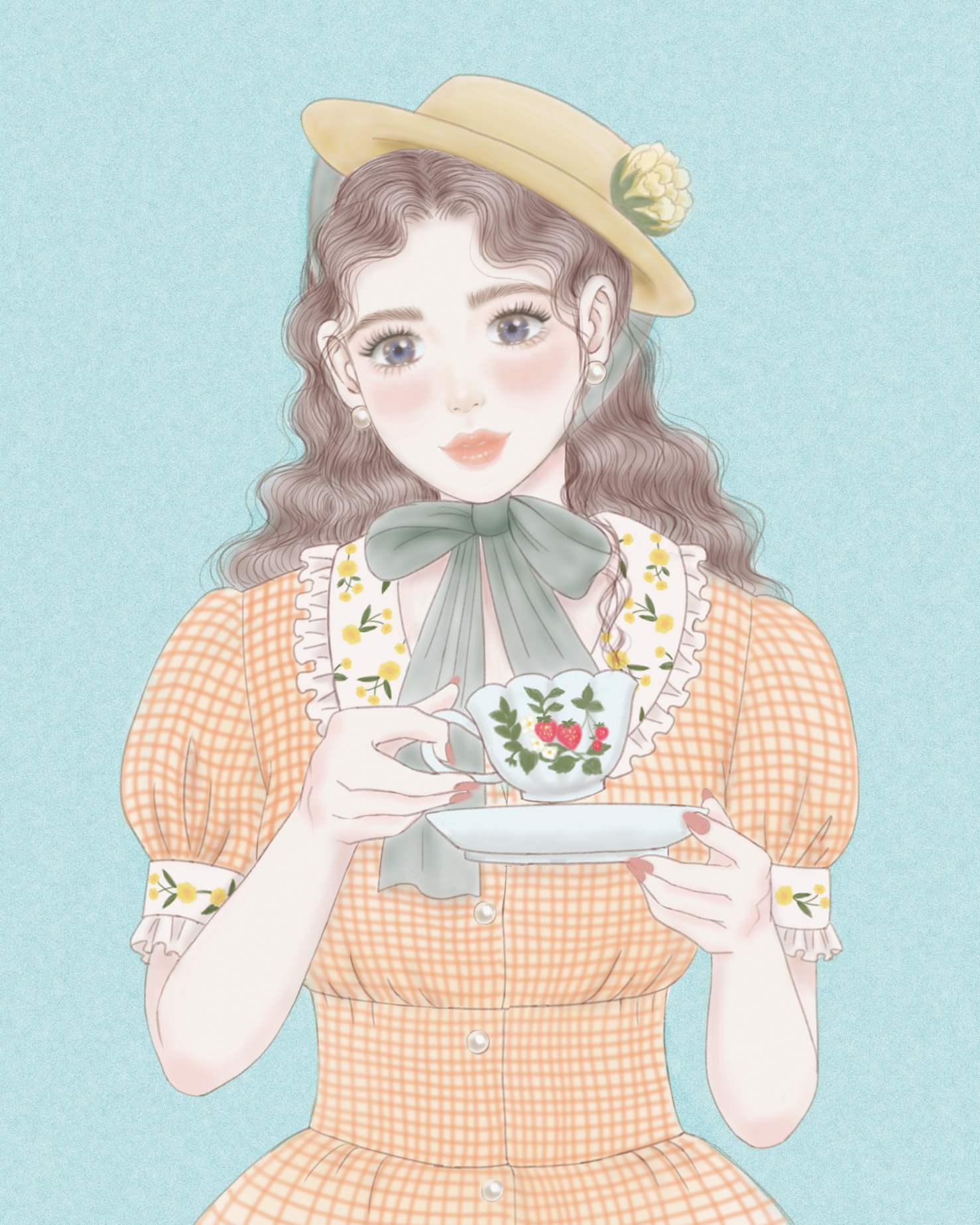 사랑스러운 소녀와 함께 차를 마시는 따뜻한 시간