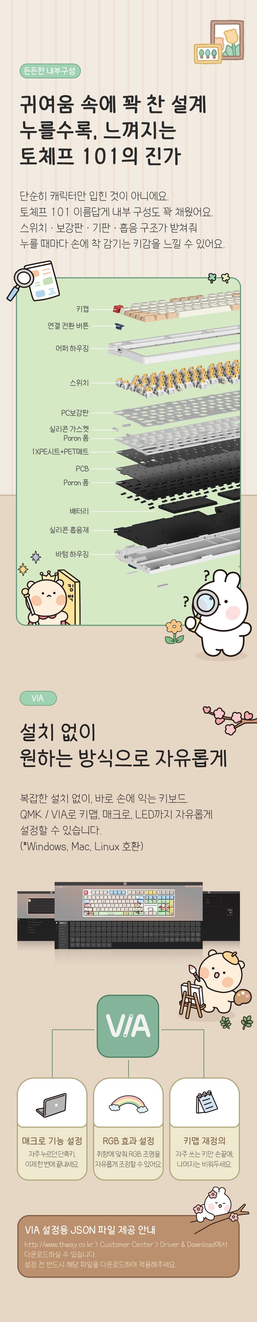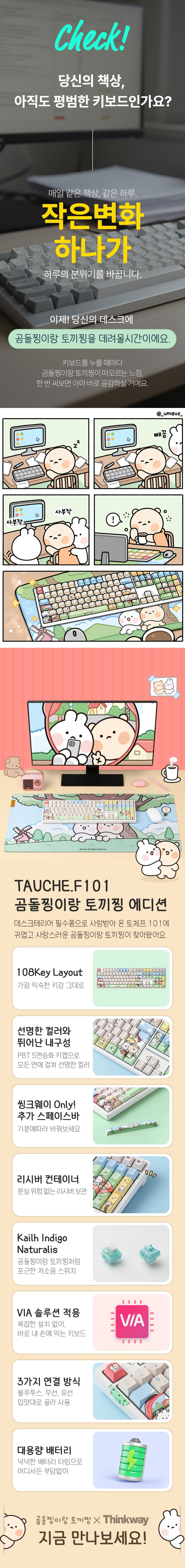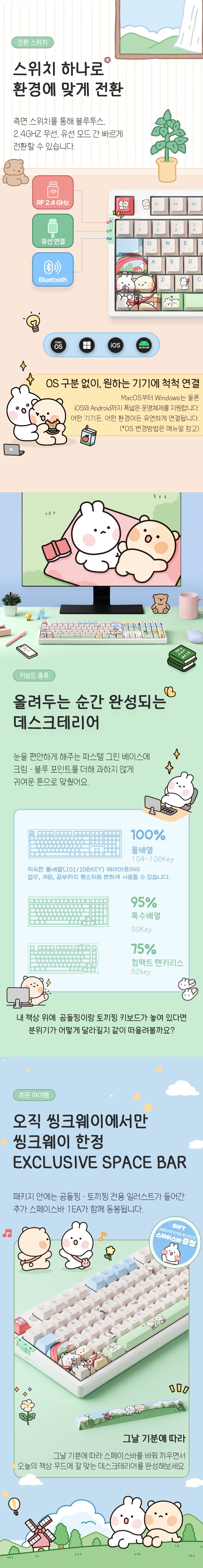 씽크웨이 토체프 101 108키 기계식 유무선 키보드 곰돌찡이랑 토끼찡 에디션