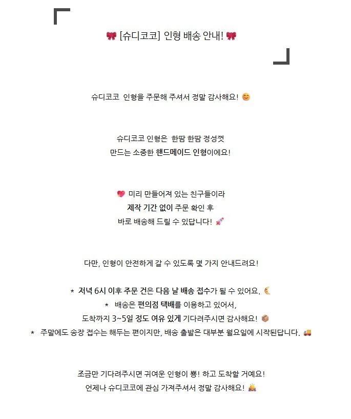 크리에이터에 따라 배송비나 소요 기간이 다를 수 있습니다.