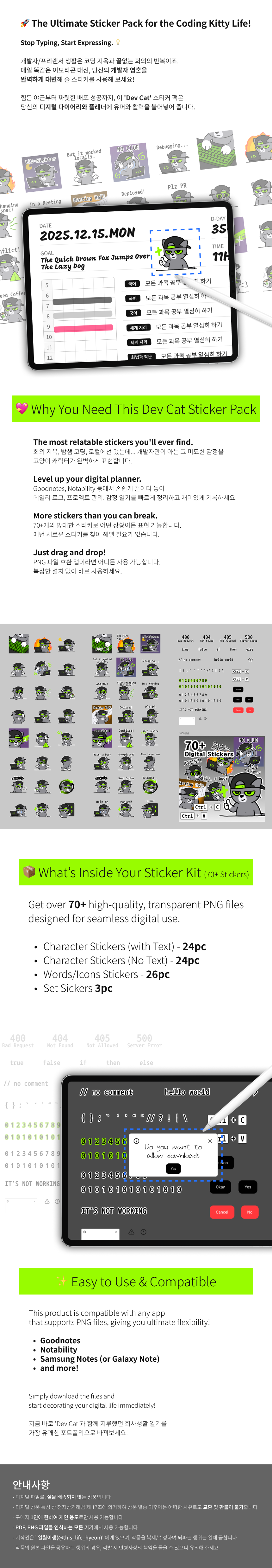 개발자 고양이의 프리랜서 회사 생활 일기 이모티콘 스티커 팩 Coding Kitty Cat Work Life Emojis Stickers Package