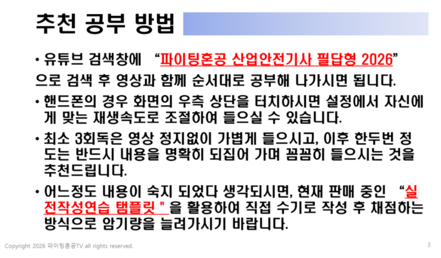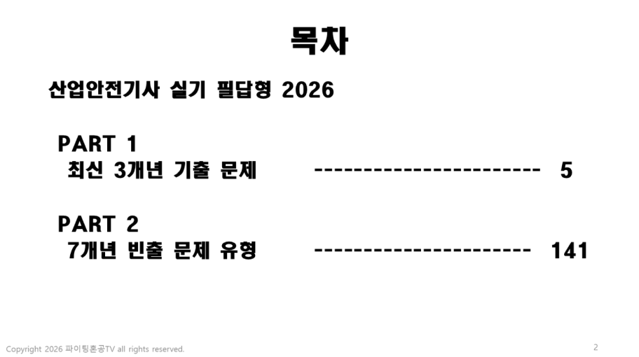 매 회차 압도적 적중률을 자랑하는 자격증 전문 유튜브채널 파이팅혼공TV의 산업안전기사 시리즈 중