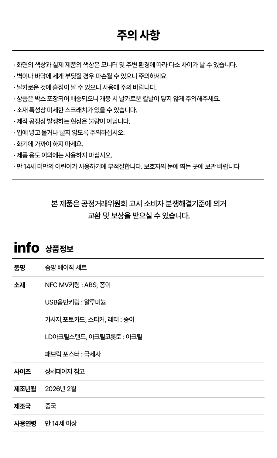 - 상품 수령 7일 이내, 개봉·훼손 전만 환불·교환이 가능합니다.