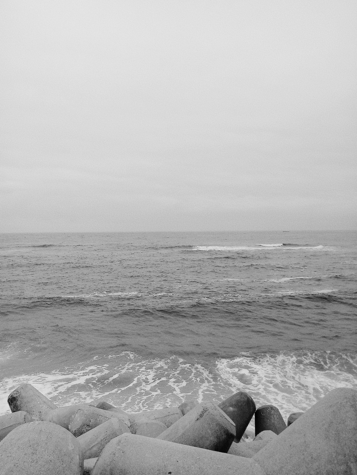 속초의 바다를 감각적인 흑백으로 찍어 맨투맨에 담았습니다.