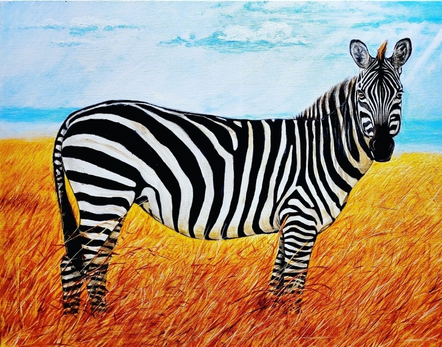 아프리카 사바나 초원에서 평화로이 바라보는 얼룩말에 영감을 느꼈다.